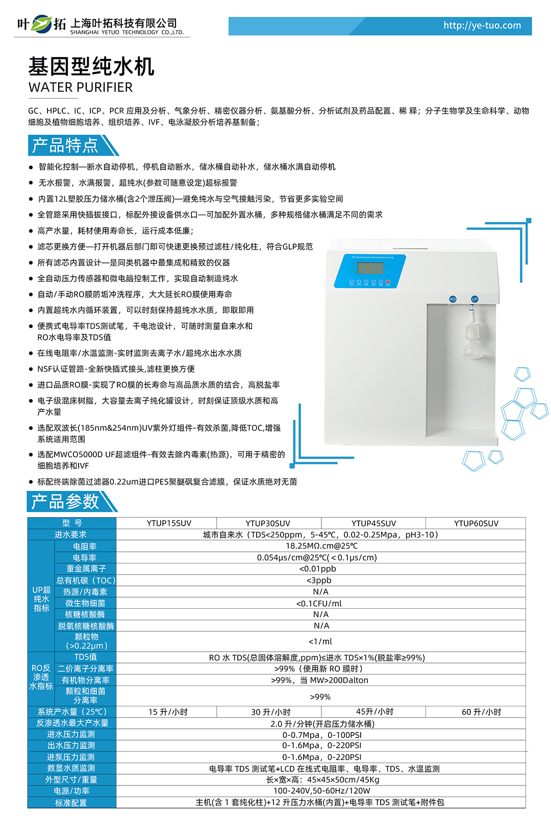 上海葉拓 YTUP45SUV 基因型純水機(jī)
