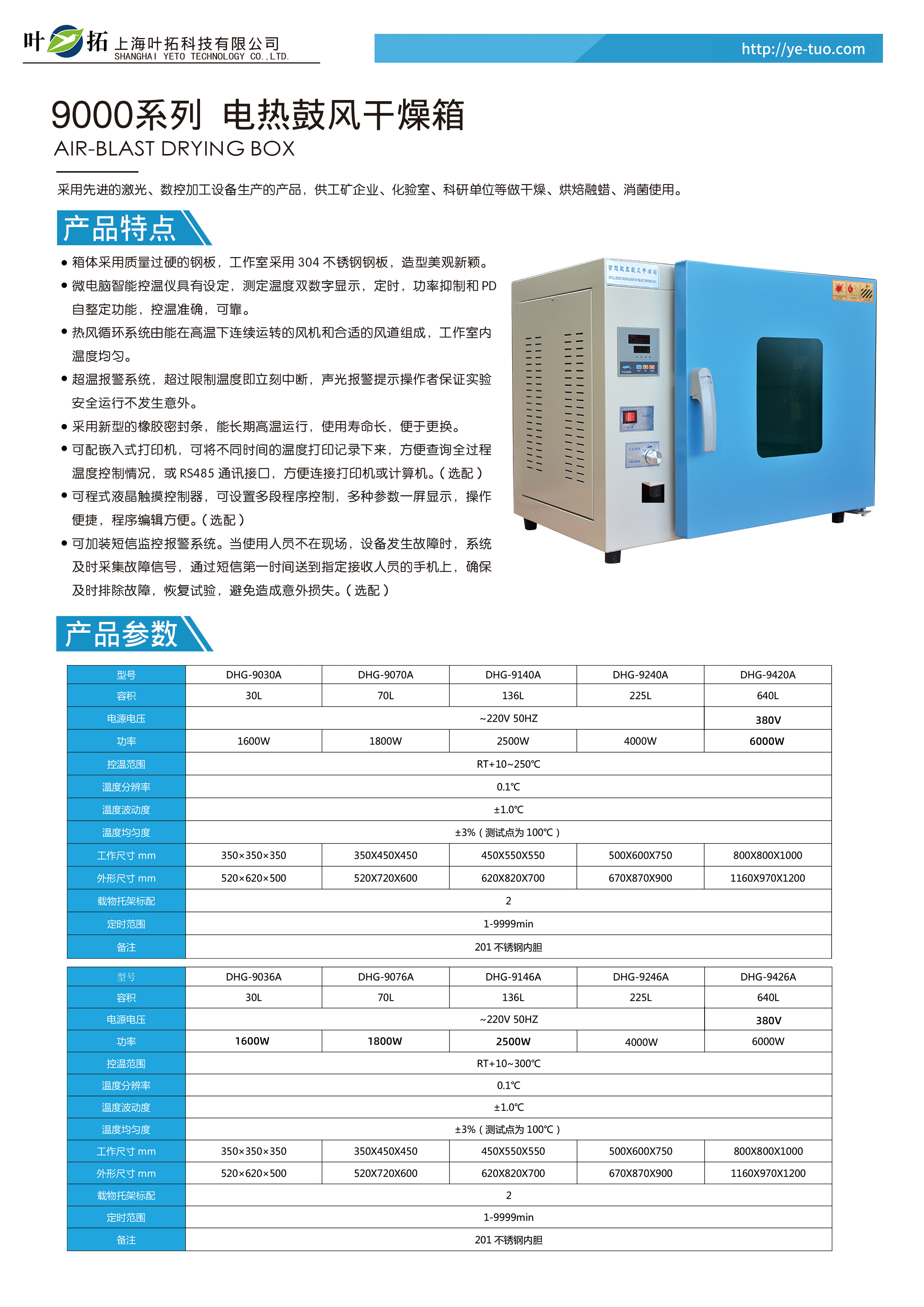 葉拓DHG系列電熱鼓風(fēng)干燥箱產(chǎn)品特點(diǎn)