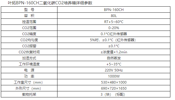 葉拓BPN-160CH二氧化碳CO2培養(yǎng)箱產(chǎn)品特點