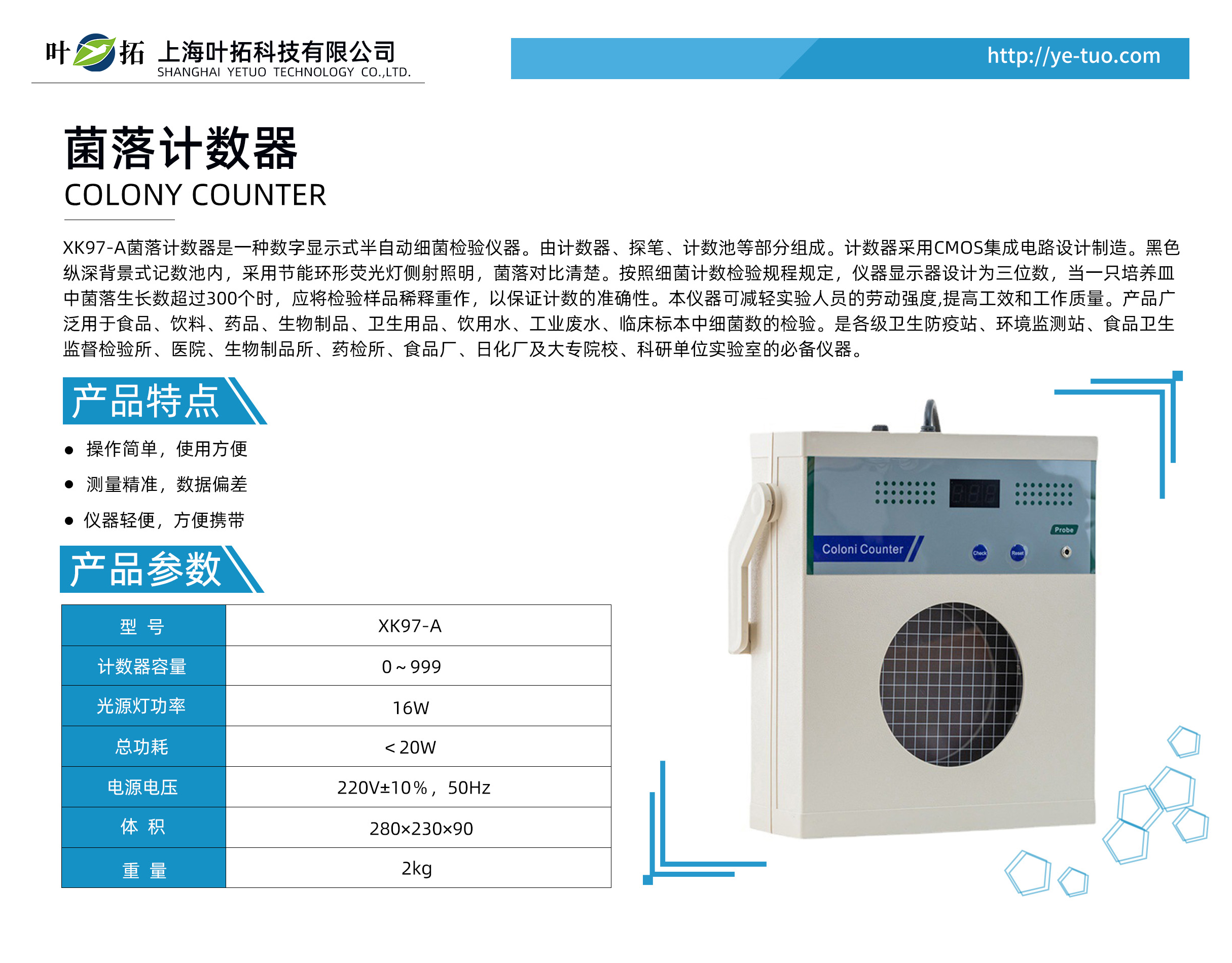 葉拓XK97-A菌落計數(shù)器產(chǎn)品特點: