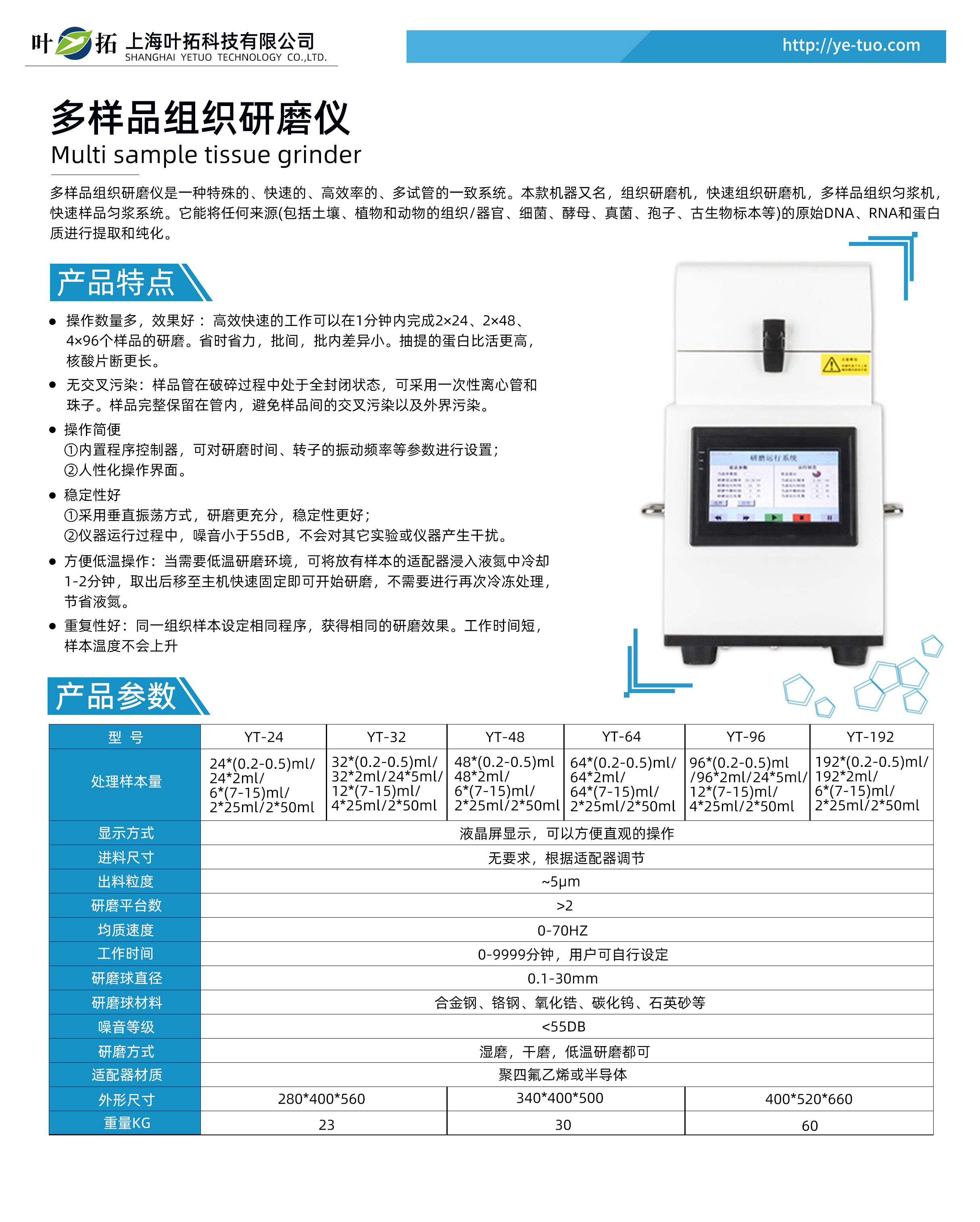 葉拓YT系列組織研磨儀產(chǎn)品特點(diǎn):
