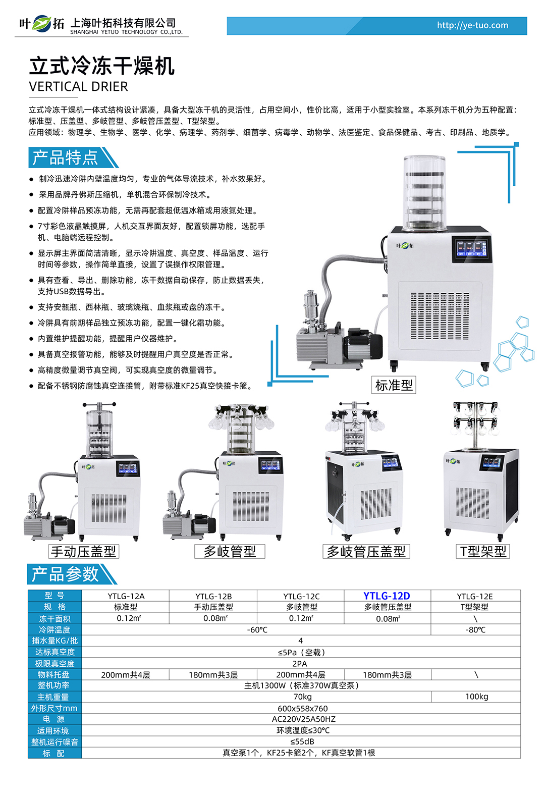 上海葉拓 YTLG-12D 立式凍干機的產品特點: