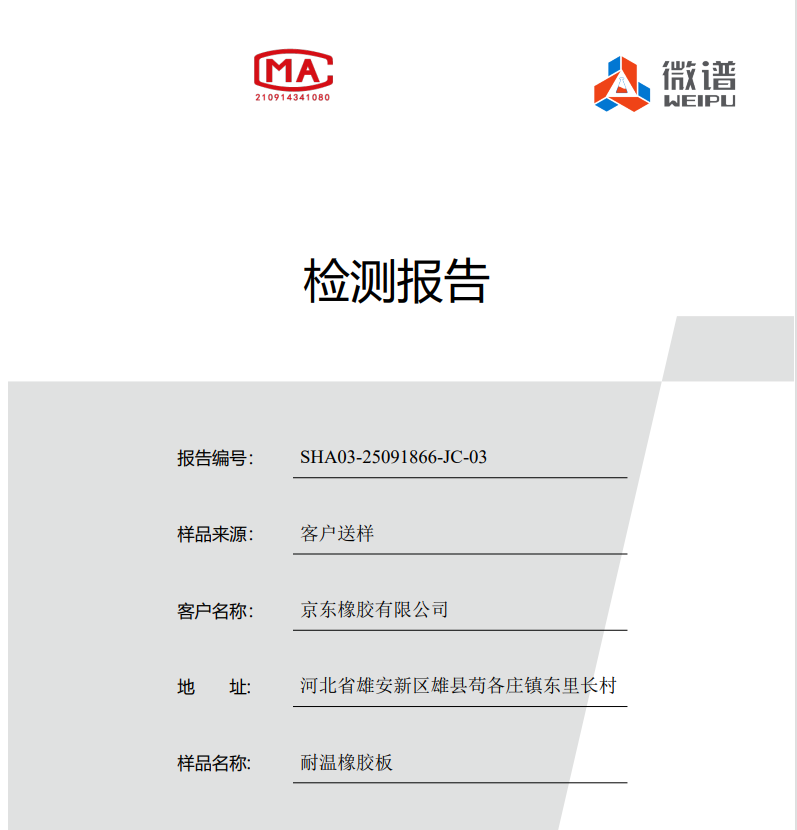 京東橡膠耐溫橡膠板檢測報告